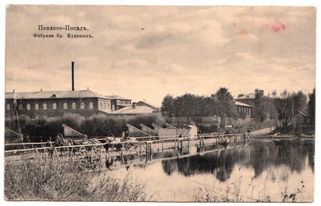 Шерстоткацкая и шелкоткацкая платочно-набивная фабрика в деревне Городок (ныне входит в черту подмосковного города Павловский Посад) была основана крестьянином этой деревни Никитой Кудиным в 1869 году [1], а не в 1873 году, как указано в большинстве краеведческих изданий. Предприятие началось с основания раздаточной конторы, которая распределяла коконы тутового шелкопряда для размотки на дому местным жителям. Размотанный шелк поставлялся на соседние шёлковые фабрики. При сыновьях основателя, Иване Никитиче (ум.1925) и Алексее Никитиче (ум. 1923) Кудиных на берегу реки Клязьмы были построены первые деревянные фабричные корпуса, в которых началась выделка шелковых и полушелковых платков. В 1895 году братья ходатайствовали о "разрешении им содержать шелко-красильную фабрику при означенной деревне а собственной земле при р. Клязьме". Разрешение было получено, и в 1897 году был учреждён Торговый дом братьев Кудиных. Предприятию сопутствовал успех. В том же 1897 году кавказских фуляровых и полушелковых платков было произведено на на 54 570 рублей.