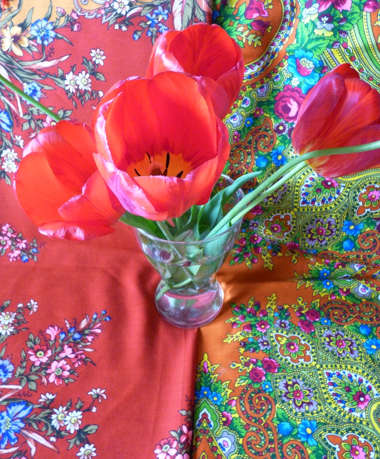 Сегодня перекладывала шали и в первый раз заметила ,что такие непохожие "Посадский-14" и "Русские сезоны-14" почти совпадают по цвету грунта и серединки. :o