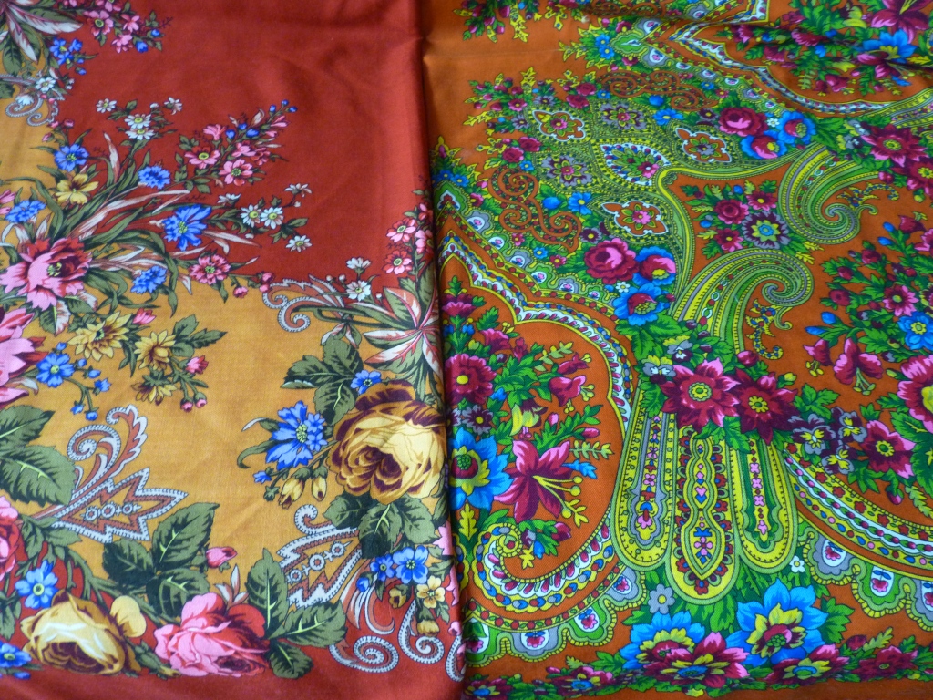 Сегодня перекладывала шали и в первый раз заметила ,что такие непохожие "Посадский-14" и "Русские сезоны-14" почти совпадают по цвету грунта и серединки.