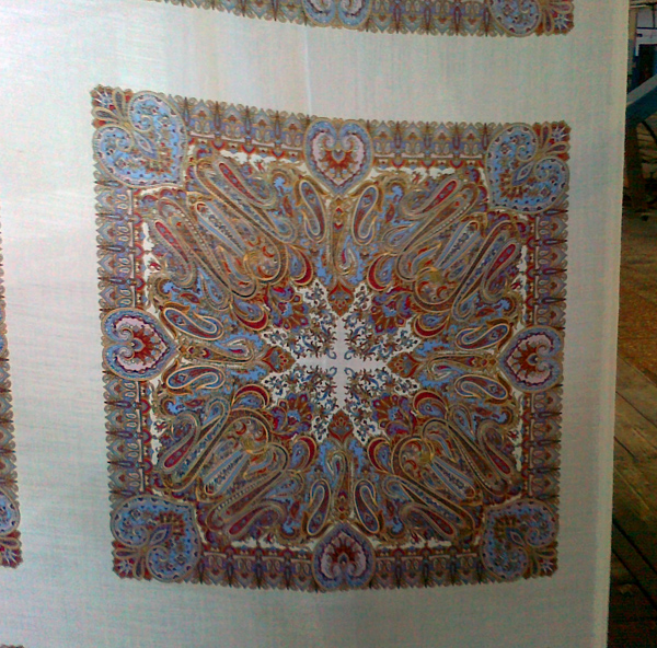 Будет называться "Цветочная сказка". Раньше выпускался без названия. Фото с видеокамеры, качество плохое, но Мила говорит, что очень красивый. Классические павловопосадские розы во всей красе. 146х146.