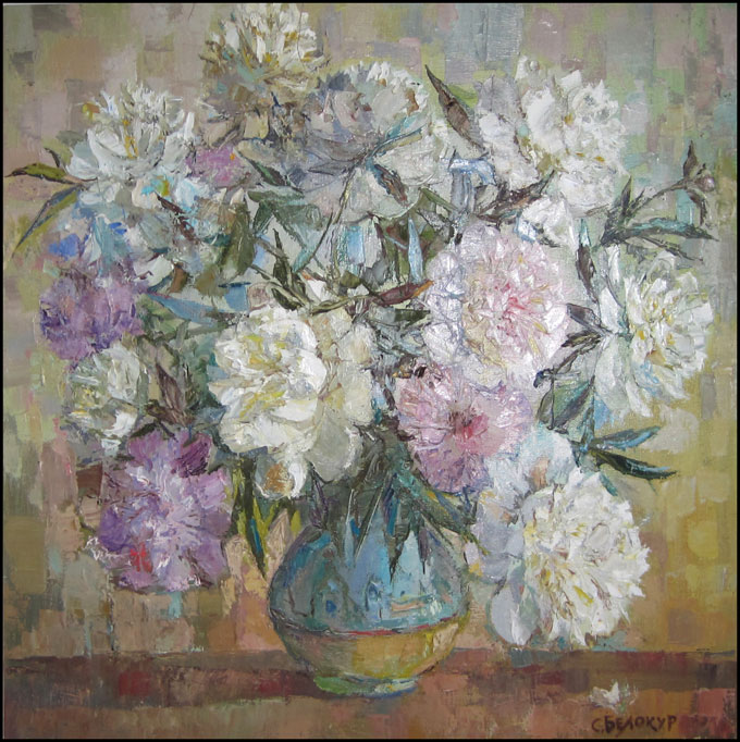 У художника совсем особенные отношения с цветами, он тонко чувствует природу. Прежде чем начать картину, он долго настраивается, вдохновляется, а потом… появляется маленькое чудо, называемое словом «натюрморт». Слово это значит «мертвая натура». Но посмотрите, разве она мертвая? Цветы благоухают, дышат, очаровывают нежностью, воздушностью прозрачной белизной.