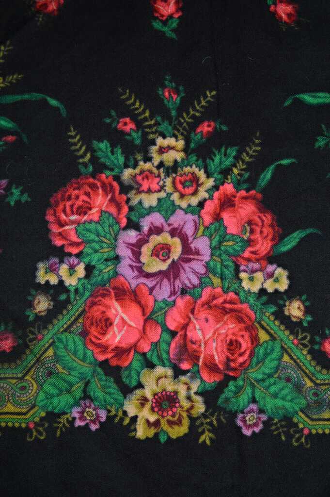 Они есть в архиве, в разных цветовых решения. На моем, как оказалось, такая же вшитая этикетка. Помнится, мы обсуждали, что рисунок вполне может быть павловопосадским, только стилизованным. Как например, Маков цвет, который эксплуатируют все и всюду.
