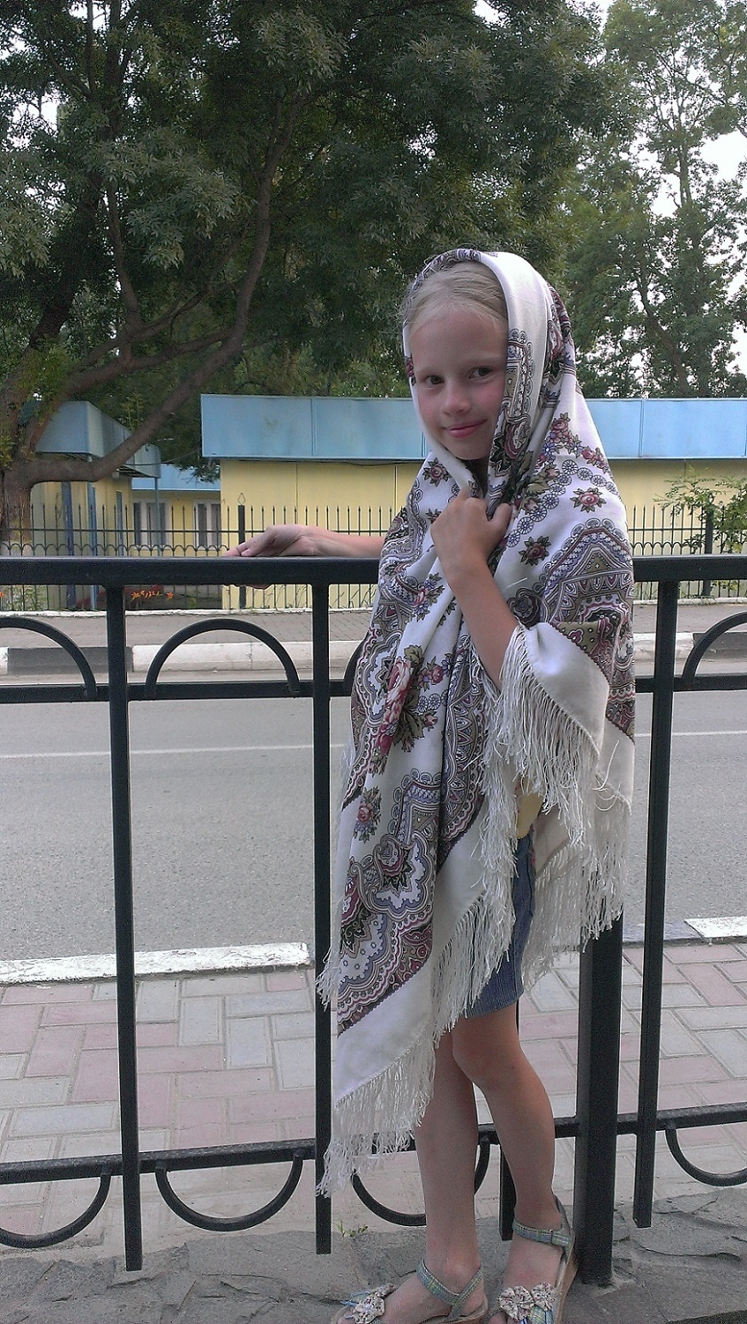 Только я собираюсь накинуть прекрасную шаль Лето в Павлове, как Марина сразу о ней вспоминает и у меня её забирает.