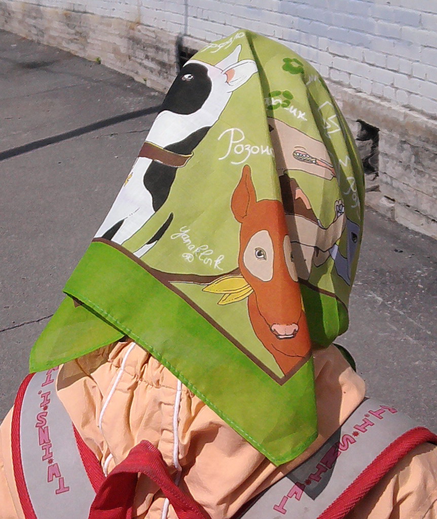 Надеваем на голову, когда сильный ветер, чтобы сохранить кичку нерастрёпанной. Или на шею, для тепла.