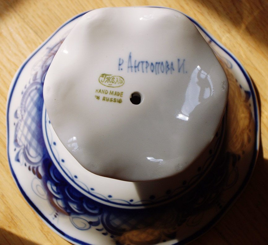 Малое клеймо и подпись мастера на магазинном фарфоре
