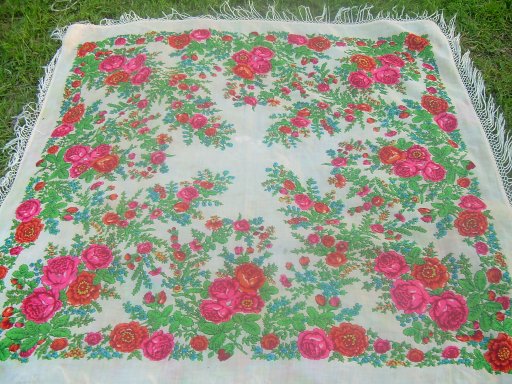 У меня есть такой такой же платок и я тоже задавалась вопросом об авторстве. Предполагаю, что автор этого платка - Валентина Тараненко. Некоторые цветы нарисованы почти точно как на Венке Дуная.
