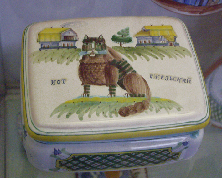 Свинья-копилка с надписью “хорошо живу” и Кот Гжельский, знатный зверюга..