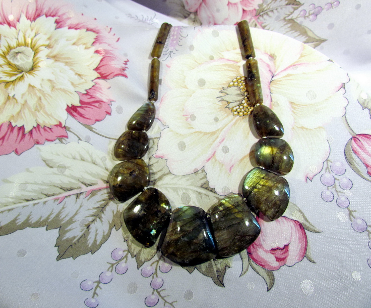 Мимо такой роскошной красоты тоже не смогла пройти. Колье из лабрадора.