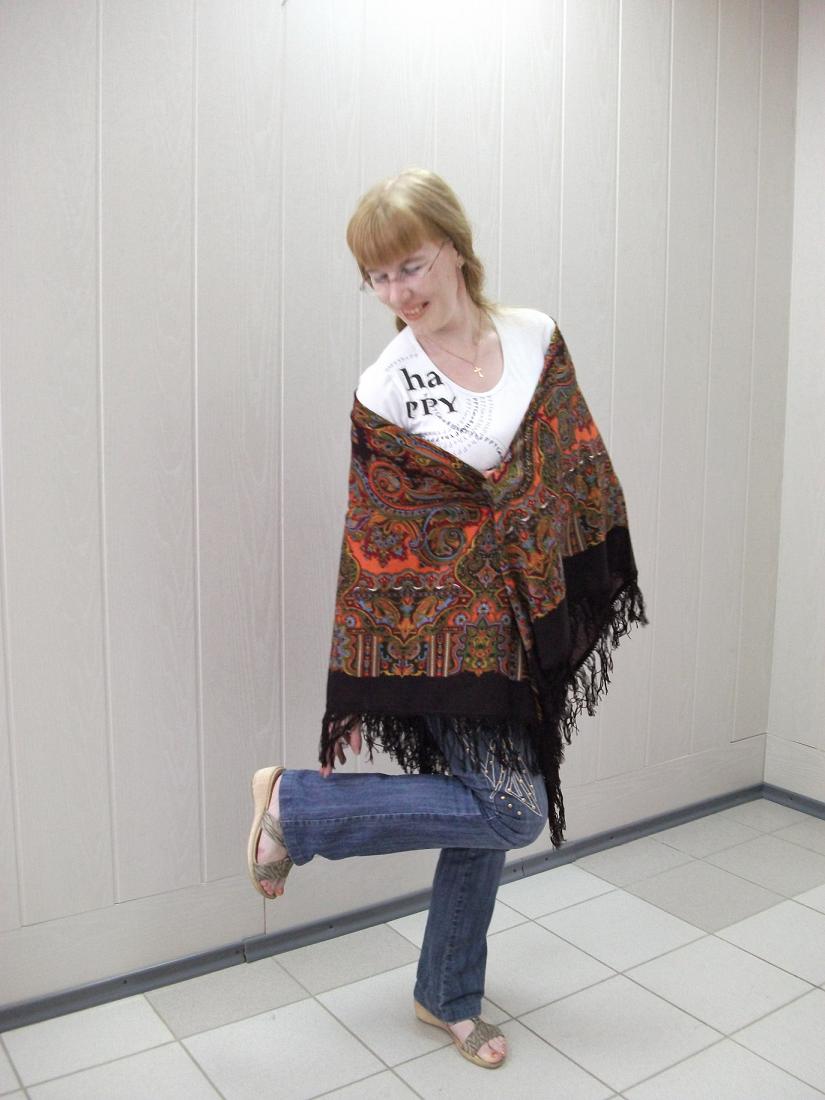 Синяя птица ^% , мне очень понравился Ваш красный-прекрасный образ. Этностиль? Мне понравилось такое определение. В любом случае стиль (хоть этно, хоть какой другой) - это лучше, чем отсутствие какого-либо стиля вообще. Стильная женщина, со своей изюминкой (в нашем случае это наши платки) - это здОрово!