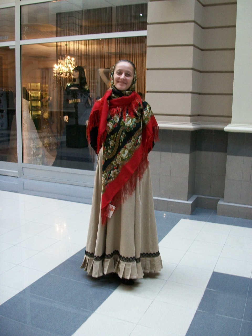 Ева, жаль что мало показываетесь, очень красивое сочетание платья и платка!