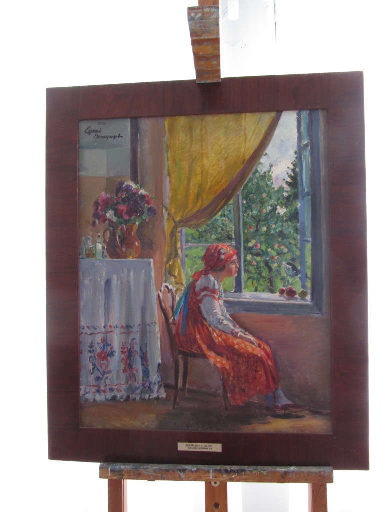 Дольше, чем у остальных, мы задержались у картины Сергея Виноградова "Барышня в сарафане".