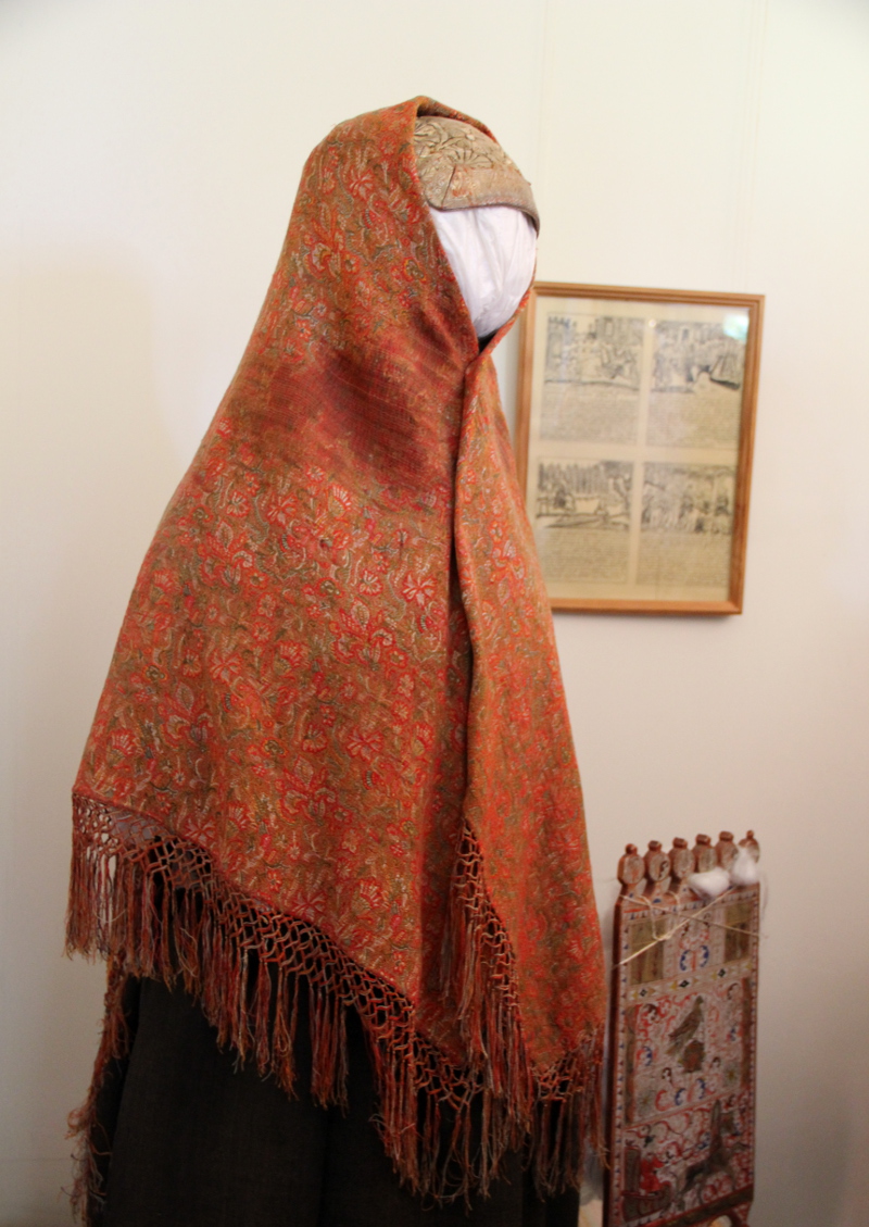 В экспозиции музея почему-то совершенно нет шерстяных шалей и платков, а ситцевые набивные показаны только как элемент народного костюма