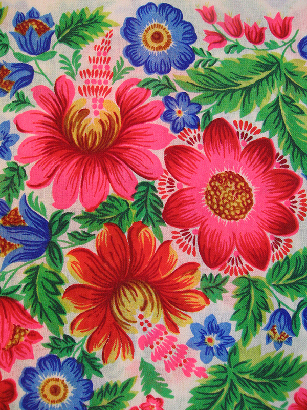 Продолжая тему украинских платочков, несу очередную партию фотографий. Первый платок - с этикеткой киевской фабрики, именно на его цветовую гамму и особенности печати я ориентировалась *произносить официальным тоном* при атрибуции схожих образцов текстильной промышленности бывшей УССР.