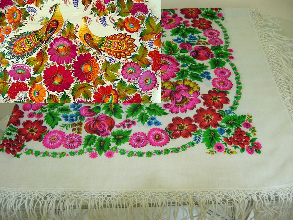 Украинские платки в павловопосадском стиле
