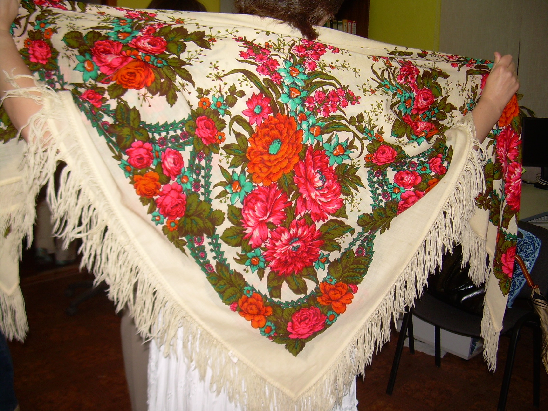 Дорогие, прошу помощи! Моя давняя выпускница спросила меня, какой у неё платок (бабушкин). А я не знаю!!! О стыд, о жалкий жребий мой! А ещё "эксперт". :>>