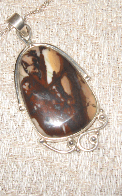 И последнее. Кулон с пейзажной яшмой. Покупала давно на Урале под названием яшма "Пикассо" (почему?). Кулон крупный, почти 10см. Очень подошел к шали "Старый замок", которой у меня уже нет (или пока нет, потому что заказала тот же колорит в Посезонам)