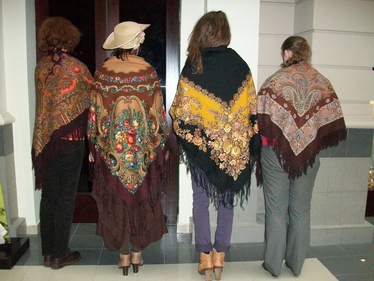 Яна, вам очень здорово в желтом Вихре танца и в неизвестном для меня платке на общем фото и на фоне Royal Palace. Элла в черно-зеленых Рябиновых бусах понравилась. Очень хоцца еще фото