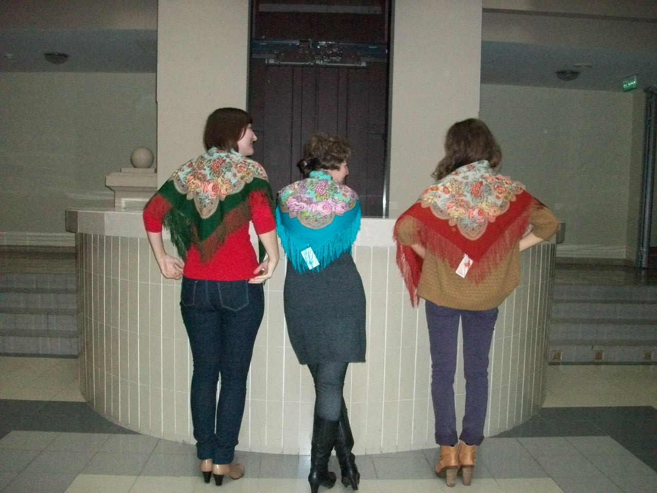 Яна, вам очень здорово в желтом Вихре танца и в неизвестном для меня платке на общем фото и на фоне Royal Palace. Элла в черно-зеленых Рябиновых бусах понравилась. Очень хоцца еще фото
