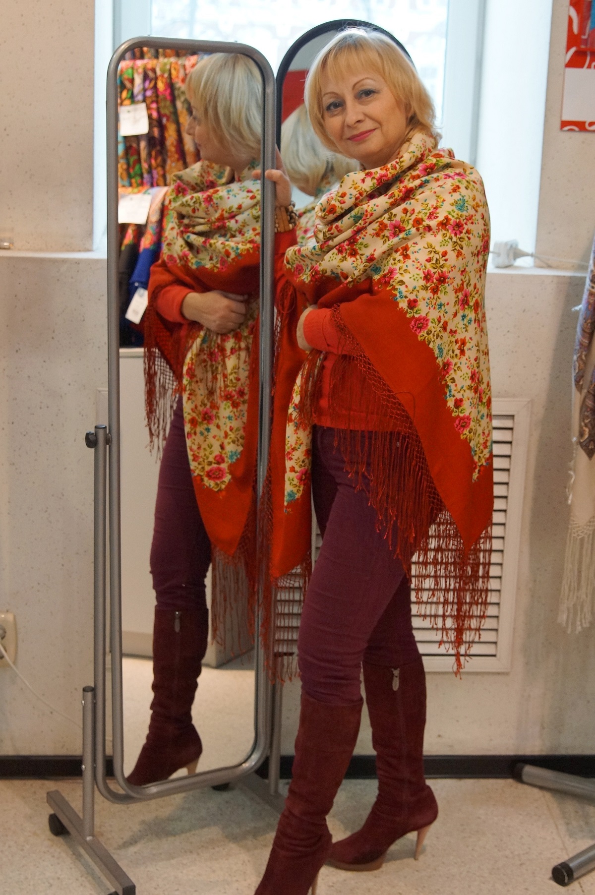 Демонстрируем ношение платков и шалей.