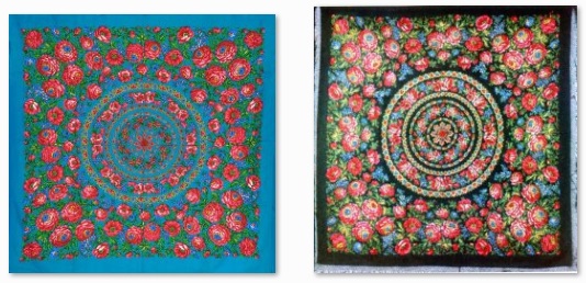 Сравнение шали конца XIX - начала XX века (справа) с современной шалью 1189-7_Восточная птица, восстановленной по старинному рисунку