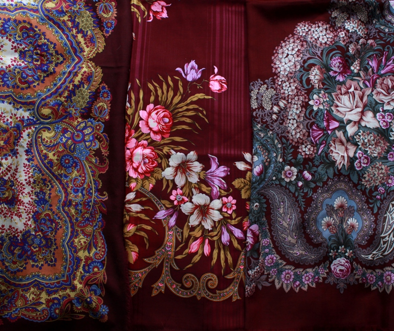 МатильдаК, судя по фотографиям в архиве, у Летних сумерек-7 максимум - это кайма свекольная, поле у них яркое и великое множество ядреных розовых роз, которые я не очень люблю, такого темного цвета как в Танго нет в других платках, причем так, чтобы было много фона. Ничего, поищу еще, посмотрю, и так лимит исчерпан пока ;)