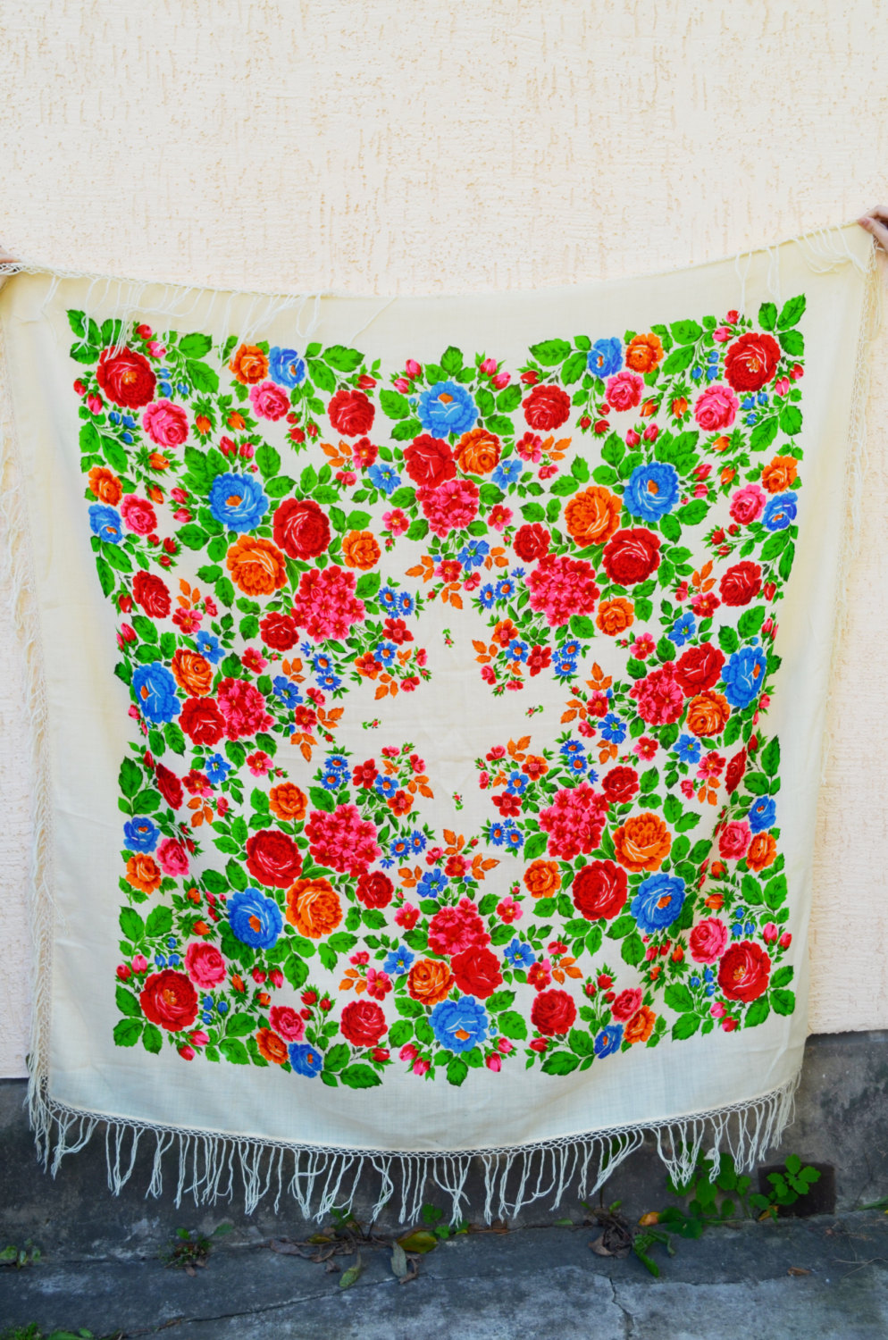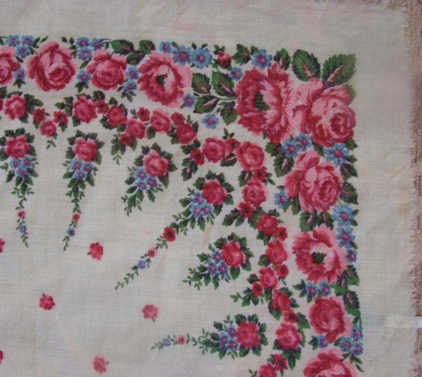 Такого платка еще не встречала. Кажется застиранным, но такой красивый! Сирень и розы ::