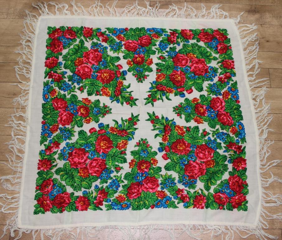 Такого платка еще не встречала. Кажется застиранным, но такой красивый! Сирень и розы