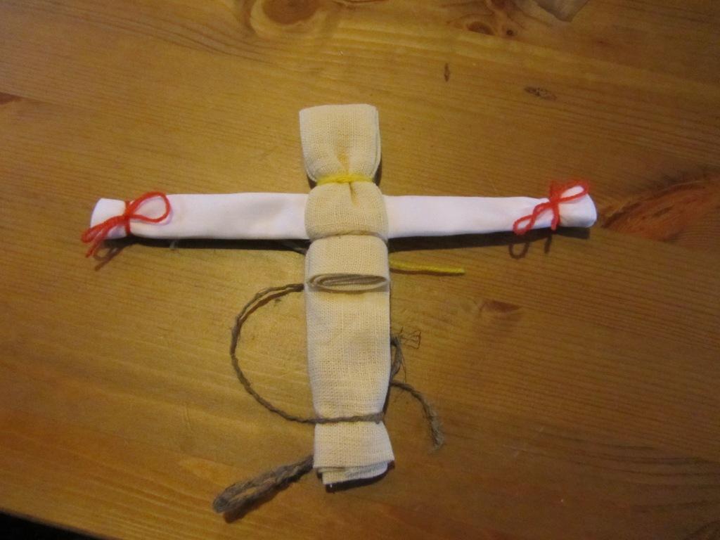 "Тельце" туго стянули шпагатом, чтобы "держало форму", то же самое сделали и для ручек - но не шпагатом, конечно, а ниточкой - надо, чтобы красиво было, манжетиками как бы: