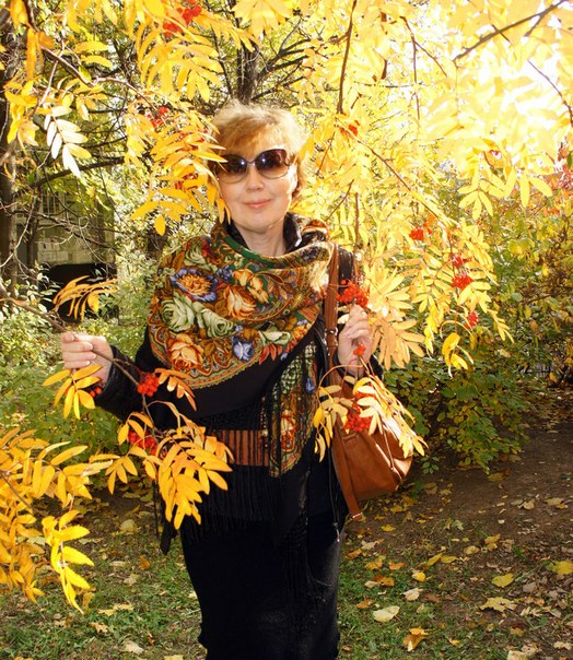 Интуиция ой какое красивое фото с Ненаглядной под рябиной, так солнечно, красочно и сома шаль светится. И с фиолетовым интересно. Действительно сразу она кажется другой. И так не нравится хмурая погода, хорошо что шали и платки это время раскрашивают