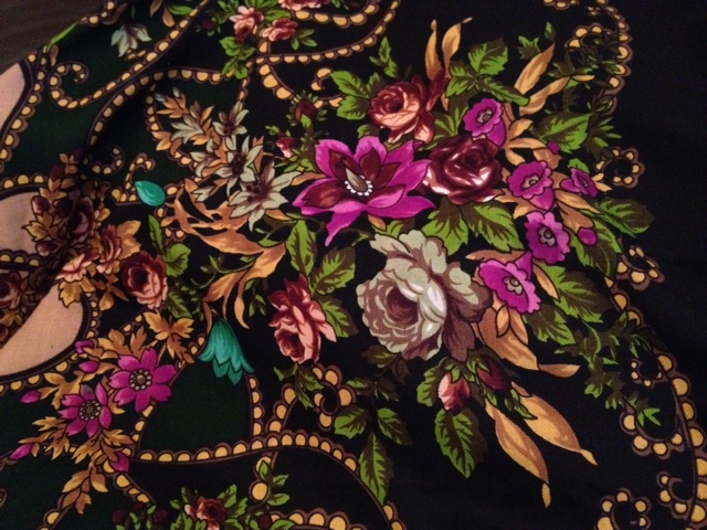 Серьезно: подумываю сложить два платка изнанками и сшить по краю. Одну бахрому можно снять, наверное. Только еще не решила, какие лучше платки брать: с одним рисунком или с разными. Можно, вообще, разные цвета попробовать. Даёшь тепло при -50!