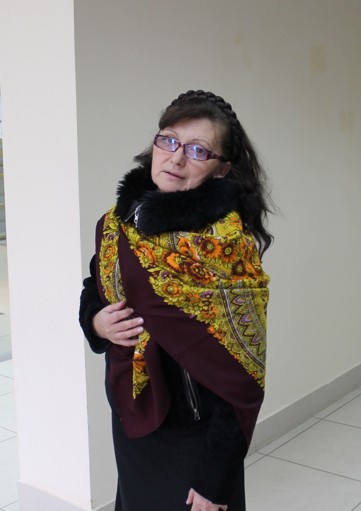 Итак, я , как всегда, опоздала. Но, как оказалось, пришла в нужный момент и в нужном платке ( не договаривались про Подкову) и застала Татьяну, примеряющую Подкову-7