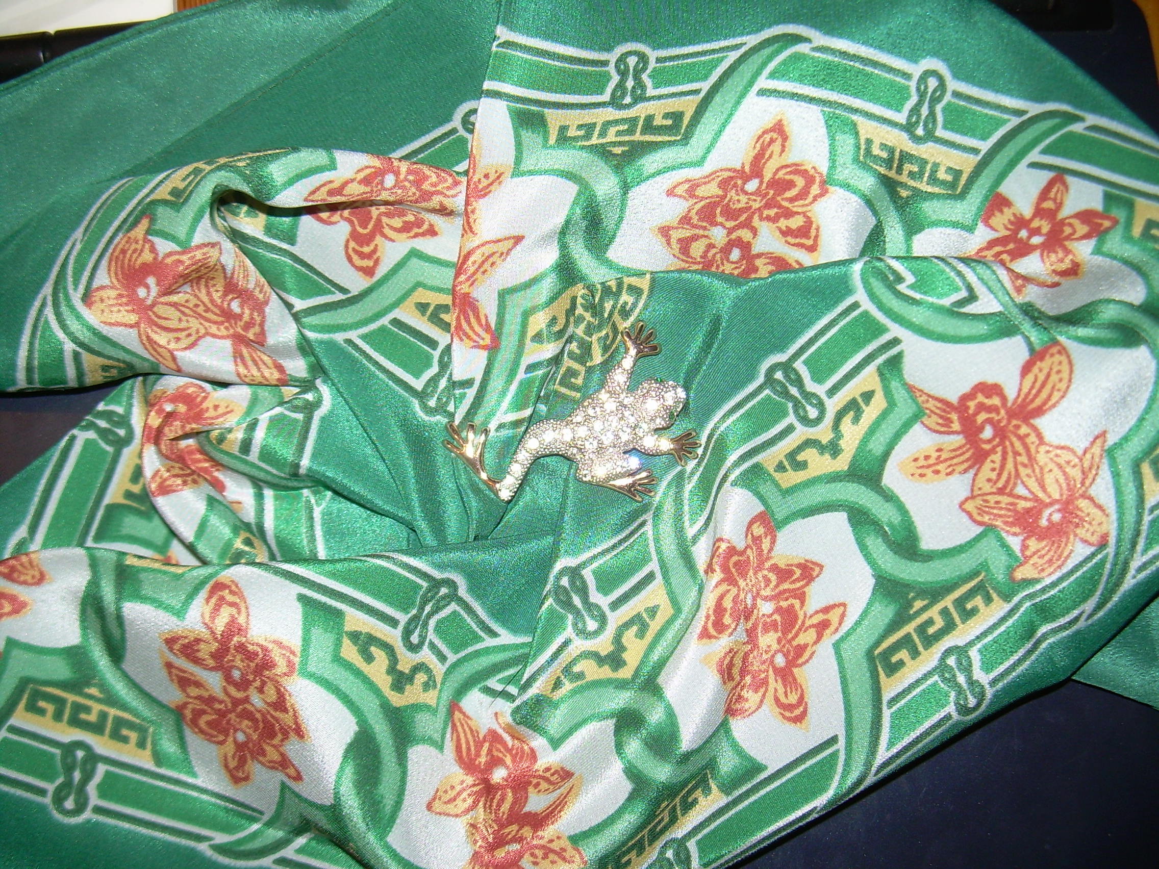 А вот моя лягушка. Платочек - "Экзотический цветок" Натальи Белокур, 1031-9.