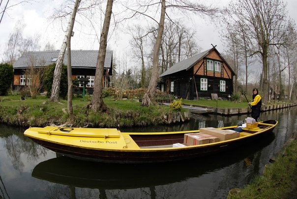 Deutsche Post доставляет в любой уголок Германии и при любых услових, вертолетом на остров Рюген, лодкой в дальнее поселение, пешком во время наводнения