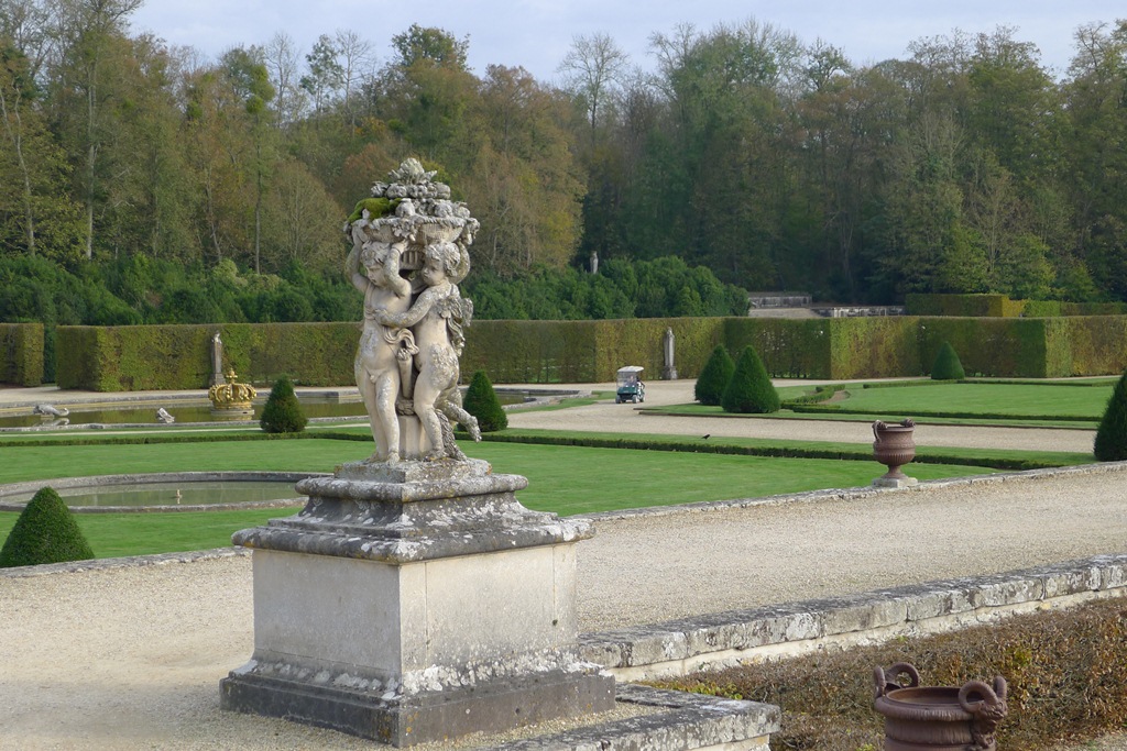 В парке множество скульптур. Состояние их оставляет желать лучшего – пятна, наросты не то лишайников, не то других вредителей. В чем причина – не знаю, может, из-за обилия воды вокруг, все же 2 речки, каналы, бассейны, фонтаны, да и вообще Париж и окрестности стоят на болотах.