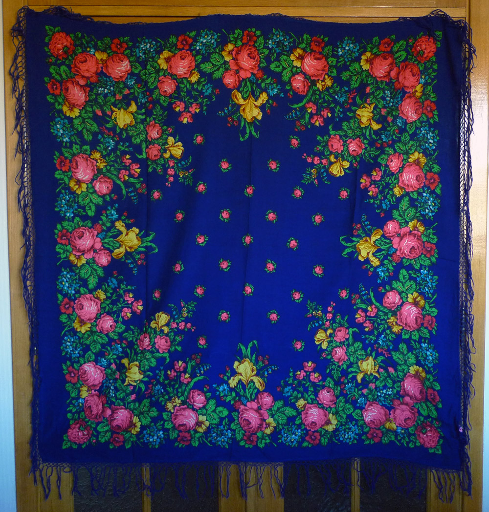 Колориты совершенно совпадают, абсолютно все цвета -из одних бочек. Но! У меня еще начинает возникать мысль: не является ли автором этой чудесной шали Ирина Петровна Дадонова ? Во-первых, я вижу сходство в прорисовке роз. Во-вторых, листва: прожилки, в том числе - центральные желтые (такие же еще и на Ежевике, Мелодии) и характерные контрастные розовые кончики листьев (Матрешка, Вензель, Мелодия, Весеннее Утро, Аромат Лета).