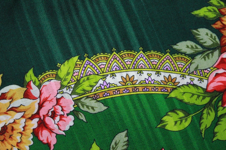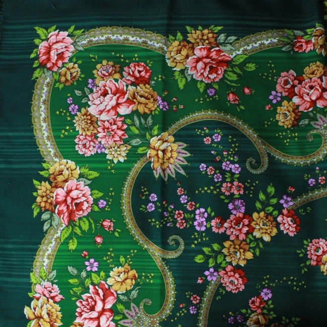 Ну вот всё-таки меня порой очень удивляет выбор колористов мануфактуры! Взять, например, Таинственную музу-10, показанную Алёной. На мой взгляд, очень симпатичный узор, цвета подобраны хорошо, все в теплой гамме. Но вот кайма живет совершенно отдельной жизнью! Она холодного бутылочного цвета, который вообще из другой оперы. И так бывает довольно часто. Я, конечно, не художник, но моё представление о цветах совсем другое!