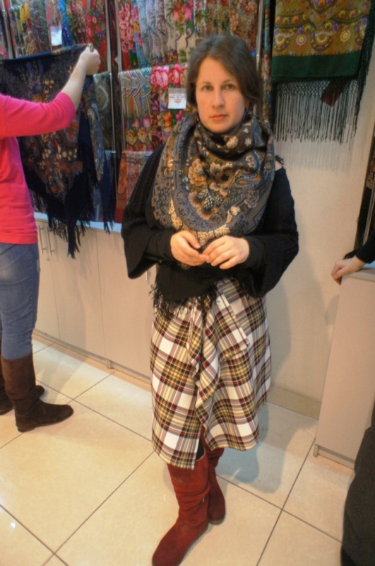 На встрече примерялся платок Весенние грезы, как нам показалось, колорита, отличного от имеющегося в базе 25-го.