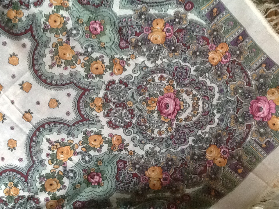 Опознайте, пожалуйста, вот такой 125*125 с бахромой /шерсть /и с белой этикеткой. Шерсть красивая, нежная.фото только что сделала при дневном свете, но у нас пасмурно, даже как-то темно. Первый день декабря .