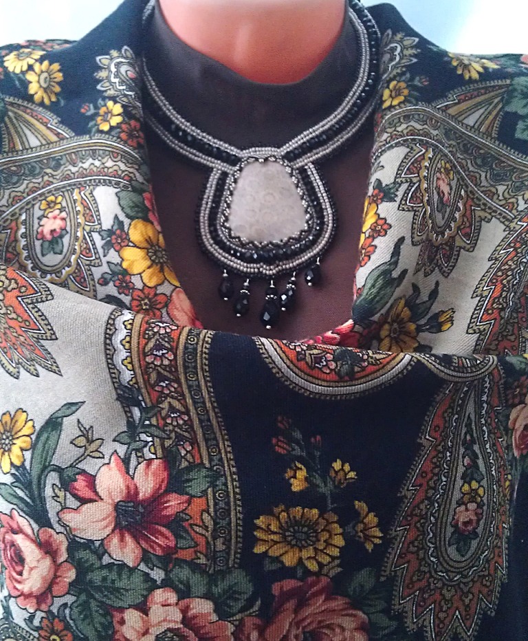 Этот камушек - окаменелый коралл, купила специально под Серебро 19. Хотела бежево-черное украшение. Сделать то сделала, но не моё оказалось >< , теперь выставила его на продажу.