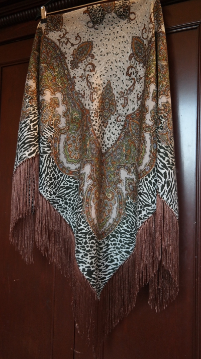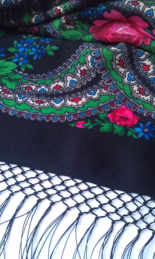 Не знаю как на светлых и цветных шалях такой вариант смотреться будет, но чернопольные шали вполне можно надставлять. Не люблю когда кайма срезана >< , ну что вот делать.