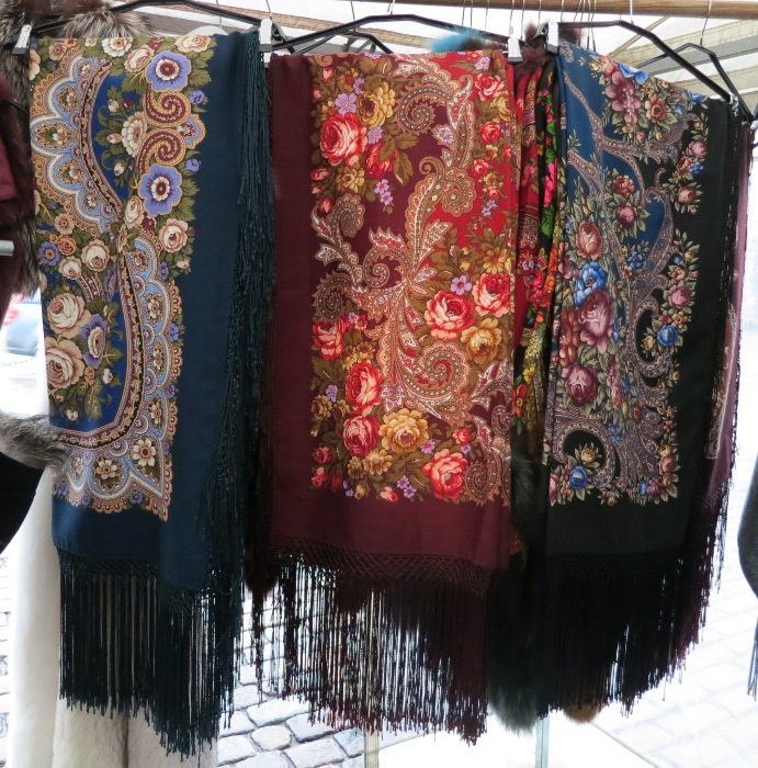 В основном там сделаны накидки из платков, в этой торговой палатке в Хельсинки, их цену не спросила!