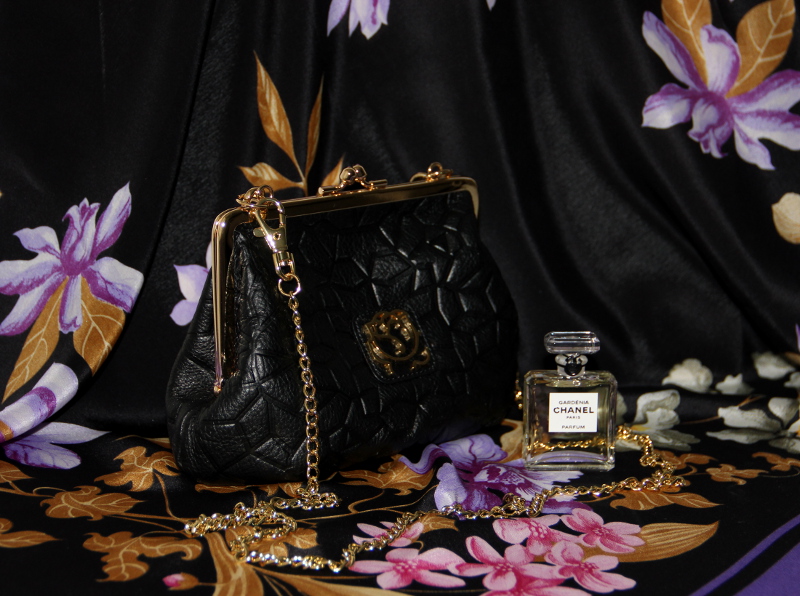 Сложился такой комплект. Платок шёлковый "Гардения", духи "Гардения" и театральная кожаная сумочка.
