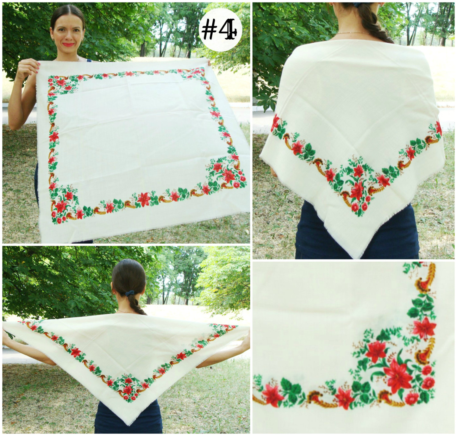 Этот и следующие платки без этикеток. Размеры у всех примерно одинаковые, в районе 72-80 см.