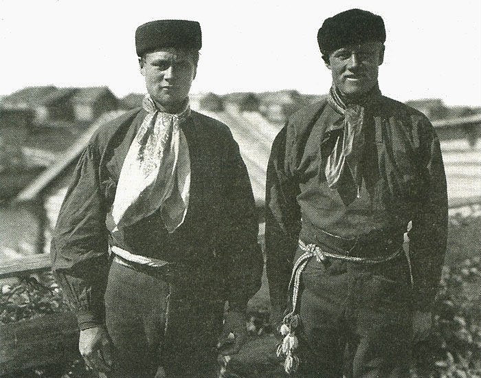 Парни в праздничной одежде. Луда, Летний берег. 1910 год. Из кн. Т.А.Бернштам. "Народная культура Поморья"