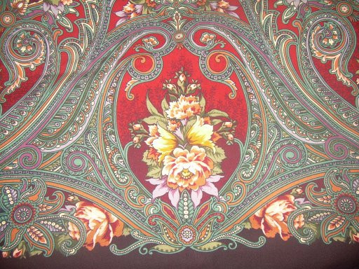 А я - наоборот, все больше заболеваю 18-м Калейдоскопом. Рисунок намного тоньше, благороднее, чище по цветам, чем в Бирюсинке и Классическом. И права Люба, убрать черную кайму - и он совсем не чернопольный, и отнюдь не "восточный". Все! Еду за ним! Еще и в связи с тем, что в последнее время все более убеждаюсь в невостребованности своих больших, тем более раритетных, шалей и такой дружественности и демократичности 125-х...