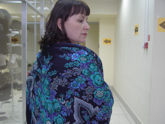 Алена на встречу принесла кроме белопольного ,очень красивого платка и шаль своей мамы.Со слов мамы-шаль японская..Думаю,Алена еще выложит фото платка на "опознание".Ну и у меня на фотоаппарате оказались два кадрика...Печать отличная,цвета яркие..