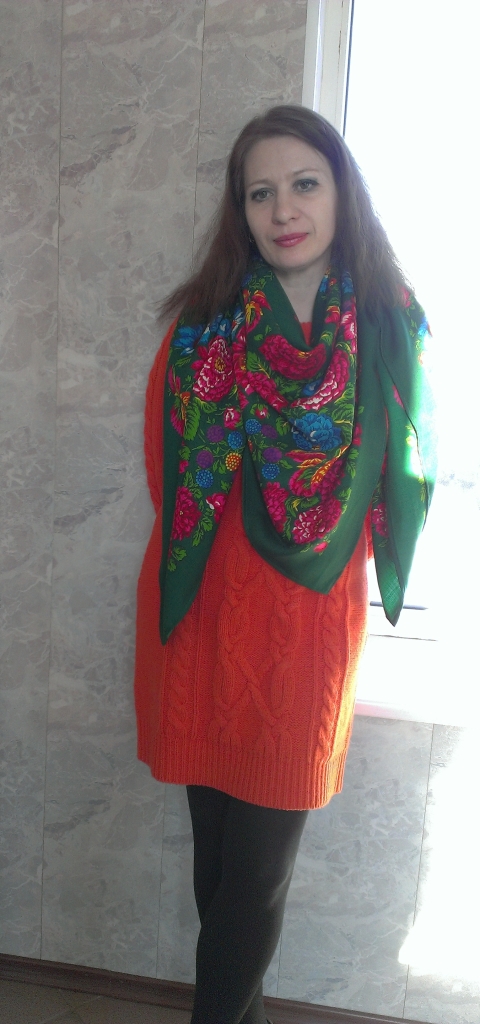 Larisa71 Лариса, очень красиво, Вам идут яркие шали, и крупные цветы Вас ничуть не затмевают! И платье здесь - в тему!