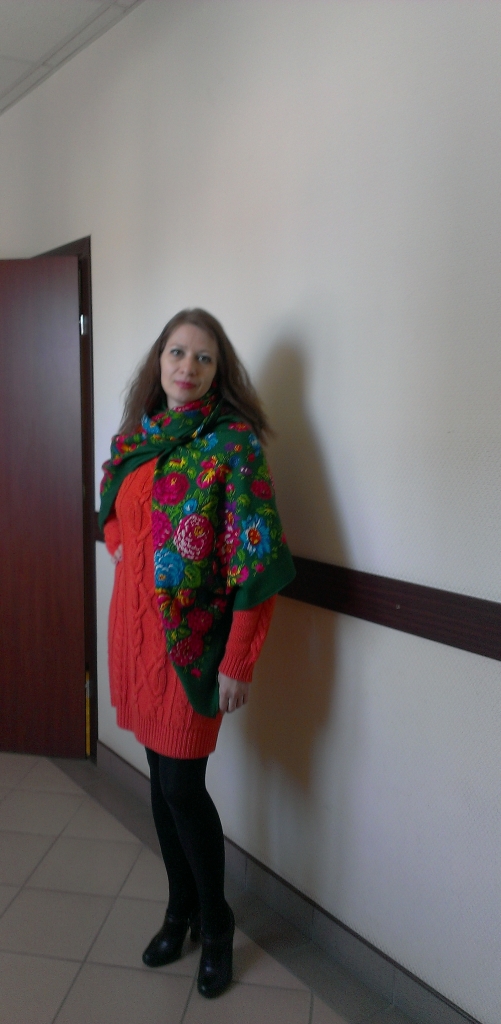 Larisa71 Лариса, очень красиво, Вам идут яркие шали, и крупные цветы Вас ничуть не затмевают! И платье здесь - в тему! ::