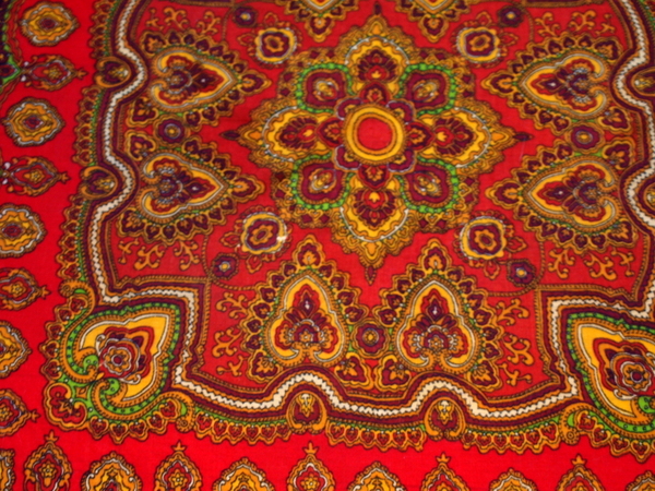 Носила его "в хвост и в гриву" пока училась в институте, сейчас часто не надеваю- очередь до него редко доходит из-за платочного изобилия. Но на пенсию еще не отправлен, хотя сильно ношен, покусан молью и многократно стирался. Краски остаются яркими и чистыми.