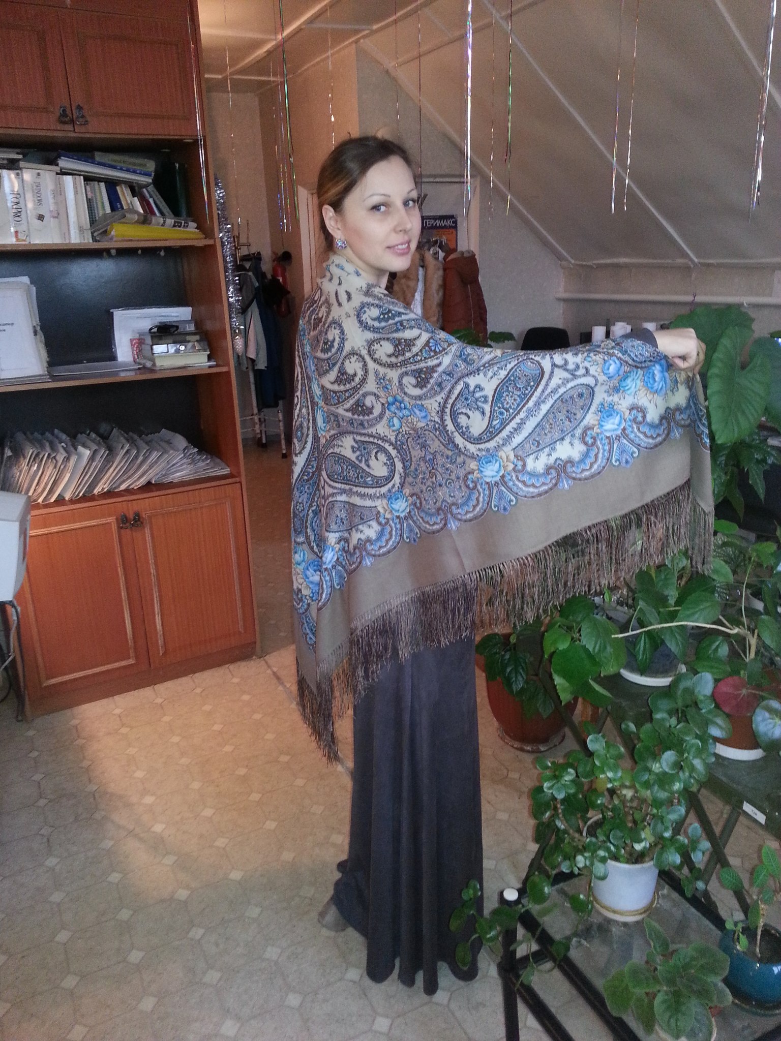 Жаль, не мой колорит, купила, думала приручу, но так и лежит, накинула, чтобы вам показать.